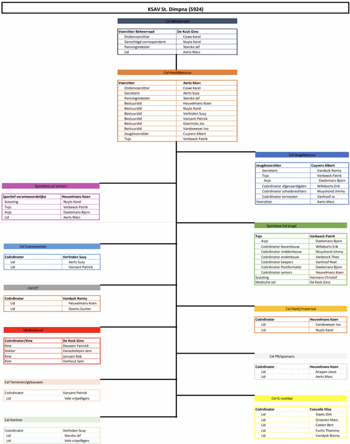 Het bestuursorgaan van KSAV St.Dimpna werd samengesteld door de leden van de VZW.
