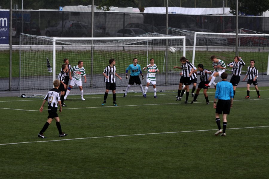 We speelden immers goed mee. Een zware plensbui verstoorde echter de pret. Met een lucky goal openden de Zweden de score. Daarvoor had de SAV-goalie al enkele keren moeten tussenkomen. Net voor het rustsignaal moest onze kapitein naar de kant. Zijn tegenstreven raakte hem – al dan niet met opzet- met zijn stuts in het aangezicht. Met z’n tienen was een tweede doelpunt niet te vermijden. Wie dacht dat onze helden aangeslagen uit de kleedkamers kwamen, vergiste zich. Een gemene Zweedse tackle waarbij geen bal in de buurt was hitste de gemoederen op. Onbegrijpelijk bestrafte de Zweedse ref dit slechts met een gele kaart.